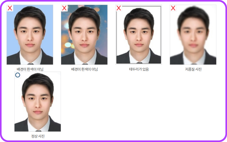 여권용 사진 규정에 부합하지 않는 경우(외교부 여권안내 홈페이지 사진 규정 참고)