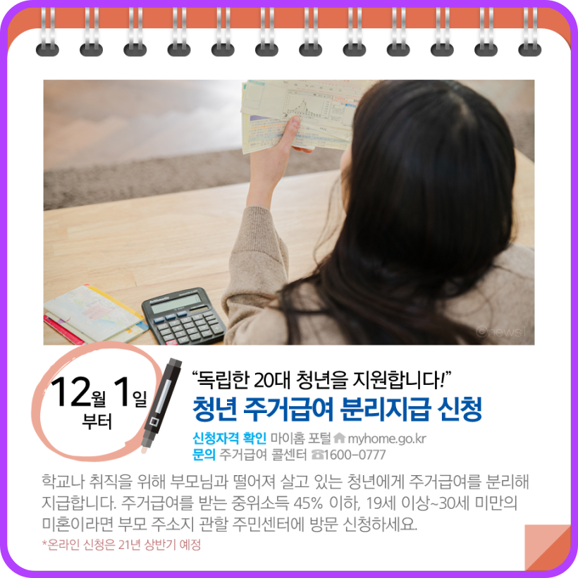 2021/01/20 - [분류 전체보기] - [20.12.01~]청년 주거급여 분리 지급 사전신청하세요!