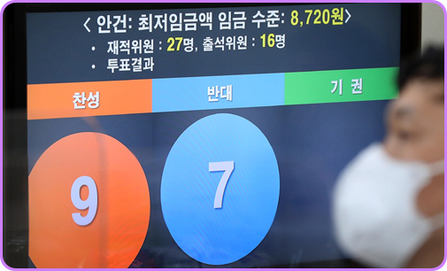 내년 최저임금 인상률은 1988년 최저임금 제도를 시행한 이래에 역대 가장 낮은 수준입니다. 지금까지 최저임금 인상률이 가장 낮았던 해는 IMF 외환위기(1998년 9월∼1999년 8월, +2.7%), 글로벌 금융위기(2010년도, +2.75%) 때보다도 낮게 결정됐습니다. 코로나 19로 인한 여파가 고용상황과 노동시장에 미치는 충격이 매우 큰 만큼, 일자리를 지키기 위한 수준에서 최저임금 인상률을 정한 걸로 보입니다.