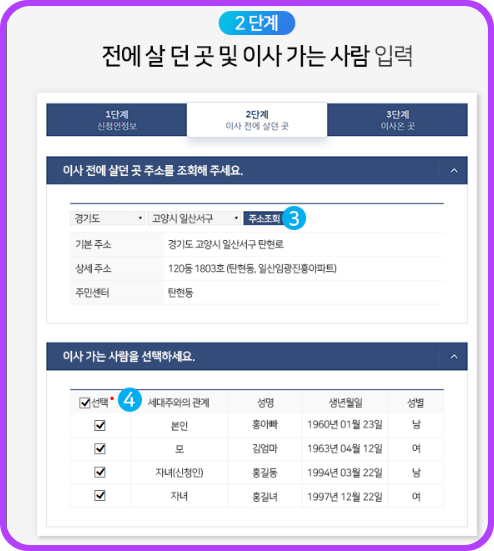 2단계, 전에 살던 곳의 주소 정보를 입력합니다.